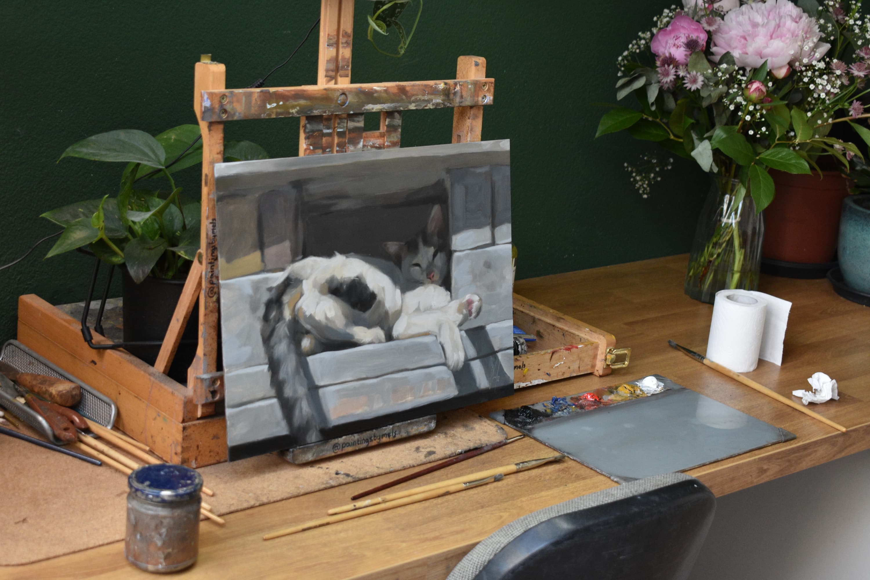 Oil paint needs time to dry properly, so your portrait lasts a lifetime. The process also includes varnishing.